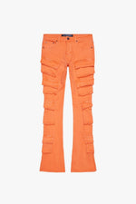 "PINNACLE” STACKED FLARE JEAN TANGERINE