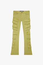 Choose Size"COMMANDER" STACKED FLARE JEAN FOLIAGE GREEN