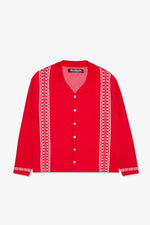 The "Paradise" Red Button Down redefines modern elegance with its intricate embroidery and versatile silhouette. Crafted from premium materials, this button-down shirt features bold chain-like patterns on the front and cuffs for a distinctive look. Perfect for layering or standalone wear, its relaxed fit and classic collar make it a must-have for elevated streetwear or semi-formal occasions.