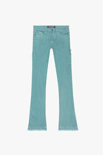 Choose Size"COMMANDER" STACKED FLARE JEAN FOLIAGE GREEN