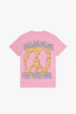 Feed your soul and your style with the Valabasas 'Soul Food' Vintage Pink Tee. This eye-catching tee features a large peace sign graphic on the back with the message 'Feed Your Soul,' creating a unique, uplifting vibe. The playful, hand-drawn style of the graphic, paired with the relaxed pink base, adds a soft yet bold touch, making it perfect for anyone who loves distinctive, expressive fashion. Crafted from high-quality, soft fabric, this tee offers all-day comfort along with a vintage-inspired wash for that relaxed, worn-in look. Ideal for pairing with jeans, shorts, or layering under jackets, this tee brings a pop of color and positive energy to any outfit. Elevate your streetwear game with this unique Valabasas piece, designed for those who value self-expression and individuality.