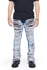Choose Size"RAVAGED" STACKED FLARE JEAN INDIGO