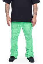 Our signature "RAVAGED" Stacked Denim Jeans are a stylish addition to your wardrobe. Made with high-quality denim, these jeans feature a stacked design in a green color. They have a comfortable, relaxed fit with the following features: