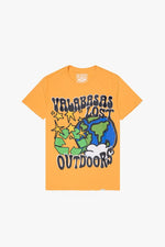 Step into nature with style in the CARE OUTDOORS Vintage Citrus Tee. Featuring a bold graphic of the Earth with stars and a playful "Valabasas Lost Outdoors" slogan, this tee is perfect for those who embrace an adventurous spirit. The warm citrus color adds a vibrant touch, making it an ideal choice for any casual day.